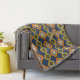 Boho 70s Retro Shapes Pattern Blue Orange Throw Blanket