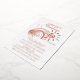 Boho elements sunshine, rainbow, moon and stars with pink flower and dried grasses bouquet "A Little Ray of Sunshine Is On Her Way" girl baby shower design. Features shades of rosy pink and medium and dark terracotta on white. Back features a rosy pink and dark terracotta irregular stipple background to coordinate with the stippling in the rainbow on front. Rose gold foil text. Composite design by Holiday Hearts Designs.