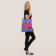 Bohemian, boldly colored, abstract flower print tote perfect for all your booty. In many bold colors of purple, pink, orange,blue, yellow, green.