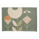 A boho inspired design of simples shapes in rustic colors of green, tan, beige, brown, and orange.