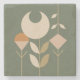 A boho inspired design of simples shapes in rustic colors of green, tan, beige, brown, and orange.
