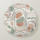 Enhance your home with this modern boho throw pillow. Featuring a soothing palette of terracotta, sage, and clay with organic shapes and a minimalist rainbow, it's the perfect accent for a contemporary sofa.