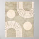 Boho Abstract Modern Art Décor Illustration. Geometric shapes simplicity rustic texture with circle and lines shapes and forms. A branch with berries done in a minimal and trendy style. Boho chic design in neutral colors, browns, beige, and sepia.