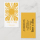 Boho 70's style abstract yellow gold sun and rays retro style business card with retro flourished typography. A 60's and 70's style vibe. Add your name, company, and city.