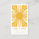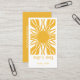 Boho 70's style abstract yellow gold sun and rays retro style business card with retro flourished typography. A 60's and 70's style vibe. Add your name, company, and city. White type on a gold background on the back of the card.