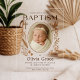 Celebrate your baby girl's baptism with this elegant boho acrylic-style invitation. Featuring earthy neutral tones, a centered photo, and hand-drawn Christian icons including a cross, dove, and botanical elements. The transparent acrylic look adds a modern twist to a timeless faith-filled design. Fully customizable with your child’s name and ceremony details.