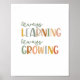 Boho always learning always growing poster Inspirational Quote Motivational Sign