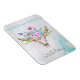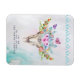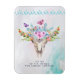 A flex magnet with the inspirational saying: let go of the things you cannot control. Designed with a turquoise and pastel watercolor background. A boho chic animal skull with a floral bouquet upon its head and little butterflies fluttering about. A cute decorative border with little teardrop shapes in light blue.