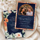 Boho Arch Earthy Floral All in One Navy Wedding Invitation