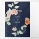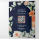 Boho Arch Earthy Floral Navy Blue QR Code Wedding Tri-Fold Invitation