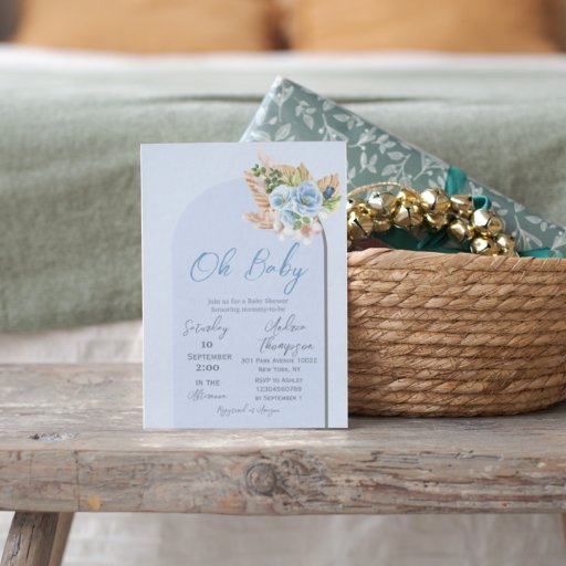 Boho Arch Pampass Grass Floral Oh Boy Baby Shower Invitation