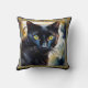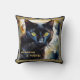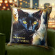 Boho artistic pillow featuring a watercolor painting of a cute black cat with your own funny (or other) texts.