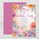 Elegant bohemian style aster flowers floral design "75th Birthday Party" design, featuring a floral frame of asters in a variety of colors, including purple, magenta rose pink and golden and butter yellow, on a pastel-toned watercolor background.
