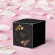 Set against a striking black background, this favor box features apricot-colored text that provides a warm and inviting touch. Delicate leaves in soft muted earth tones and earthy autumnal copper shades evoke the cozy charm of autumn, while the geometric frame in burnt orange and terracotta adds a rustic yet sophisticated flair. This favor box perfectly complements your autumn-themed wedding, capturing the essence of a bohemian chic celebration. This favor box radiates warmth and elegance, reflecting the romantic and modern minimalism of your special day.
