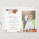 Boho autumn fall 2 photos elegant script wedding thank you card