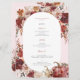 Elevate your wedding reception with these beautifully designed Boho Autumn Floral Wedding Menu cards, perfect for a fall-themed celebration. Featuring rich, warm hues of burgundy, blush, and cream floral accents, these cards capture the essence of autumn elegance. The delicate arrangement of seasonal blooms, including roses, dahlias, and peonies, surrounds the menu details, while an illustration of pumpkins adds a charming rustic touch.