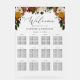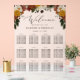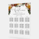 Rustic floral wedding seating chart featuring watercolor flowers and greenery in muted autumnal colors of ivory, orange, mustard gold, olive green, dusty rose, and brown with a faux frosted acrylic background. "Welcome" is displayed in a modern calligraphy script with your names and wedding date shown below. Personalize with the names of your guests. This acrylic wedding seating chart was designed to coordinate with our Boho Autumn Floral wedding collection.