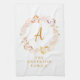 Add a touch of personalized elegance to your kitchen with this beautiful watercolor wreath kitchen towel. Featuring a delicate arrangement of botanical elements in soft, inviting hues, this towel is customized with your family name and initial, making it a truly unique piece. Perfect for adding a touch of rustic charm to your own kitchen or as a thoughtful gift for housewarmings, weddings, or any occasion to celebrate family. Enjoy the beauty of nature's artistry combined with a personal touch every time you use this lovely kitchen towel.