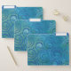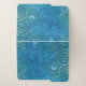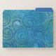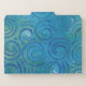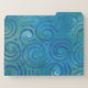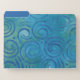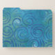 These colorful file folders feature a digital batik abstract pattern of blue spirals on a blue and green background on the outside, with a coordinating solid blue interior. An ideal addition to your boho decor.