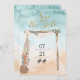 Boho beach wedding Save the Date with rustic arbor, elegant gold calligraphy and watercolor ocean shoreline. This beautiful design has a sandy beach, bohemian chic style wedding arch decorated with voile and eucalyptus with a basket of pampas grass and tropical flowers. "Save the Date" is hand lettered and the template is ready for you to add the remaining save the date details. Gorgeous, inviting design for a tropical destination wedding, vintage seaside wedding, nautical or summer seaside theme. Please browse my store for the Boho Beach collection, for coordinating invitations, enclosure cards and mailing accessories.