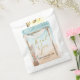 Boho beach wedding favor bags with rustic arbor, elegant gold calligraphy and watercolor ocean shoreline. This beautiful design has a sandy beach, bohemian chic style wedding arch decorated with voile and eucalyptus with a basket of pampas grass and tropical flowers. "thank you" is hand lettered and the template is ready for you to personalize with your name and wedding date. Gorgeous design for a tropical destination wedding, vintage seaside wedding, nautical or summer seaside theme. Please browse my store for the Boho Beach collection, for coordinating invitations, enclosure cards and mailing accessories.