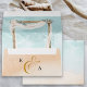 Monogrammed Wedding Invitation envelope with rustic arbor, elegant gold calligraphy and watercolor ocean shoreline. This beautiful design has a sandy beach, bohemian chic style wedding arch decorated with voile and eucalyptus. The ampersand is hand lettered and the template is ready for you to add the bride and groom's initials. Inviting and versatile design for a tropical destination wedding, vintage seaside wedding, nautical or summer seaside theme. Please browse my store for the Boho Beach collection, for coordating enclosure cards and mailing accessories.