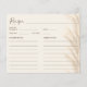 Boho beige pampas grass watercolor bridal shower baking recipe card