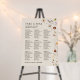 The wedding seating chart is characterized by boho style, beige color, and natural wildflowers, with a mix of different font styles, often in different sizes, to create a unique, eclectic look that makes this sign a natural aesthetic.