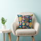 Boho Birds Trees Flowers Folk Art Pattern Throw Pillow