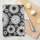 Boho Black and White Folk Flower Starburst Pattern Kitchen Towel