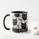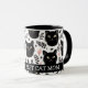 This cute "Best Cat Mom" mug has a pattern of boho style black cats and leaves, with a touch of pale pink. The pattern is placed on a white background. At the bottom is a black banner that currently says "World's Best Cat Mom". All the text is customizable, so you may personalize it or make it say whatever you'd like.