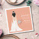These napkins feature a stunning boho bride in a delicate lace wedding dress, beautifully adorned with a lush bouquet of roses, pampas grass, eucalyptus, and ranunculus.