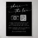 This boho black wedding share the love QR code poster is perfect for a minimalist wedding. The modern bohemian design features simple rustic calligraphy with a unique yet classic style. Perfect for any season: spring, summer, fall autumn or winter. Enter your web address into the QR code section of the template and the QR code will automatically update and link to your site. Personalize the sign with your wedding hashtag for sharing photos on social media.