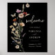 Boho Black Welcome Wedding Poster. This stylish & elegant wedding welcome poster features a gorgeous hand-painted watercolor butterfly and wildflowers arranged as a lovely bouquet. Find matching items in the Moody Black Boho Wildflower Wedding Collection.