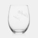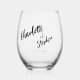 Boho black white minimalist script wedding custom stemless wine glass