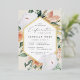 Elegant floral confirmation invitation features an elongated hexagonal frame of watercolor flowers and foliage in boho desert inspired shades of peach, white, ivory, and sage green, and finished with gold foil trim. Personalize with your church ceremony and confirmation party details in modern lettering.