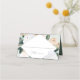 Boho chic floral place card or table card design features a geometric border of watercolor foliage and flowers in desert inspired shades of pastel peach, sage green, ivory and white. Space provided for guest name and table number. Cards reverse to reveal a matching floral frame with your initials and wedding date inside. Designed to match our Boho Blooms wedding and event collection.