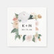 Boho chic wedding napkins feature a square watercolor border of sage green botanical foliage and pastel earth tone flowers in shades of peach, ivory, and white, framing your initials or monogram and event date in modern lettering. Designed to coordinate with our Boho Blooms wedding and event collection.