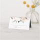 Boho chic floral place card or table card design features a top border of watercolor foliage and flowers in desert inspired shades of pastel peach, sage green, ivory and white. Space provided for guest name and table number. Cards reverse to reveal a matching floral frame with your initials and wedding date inside. Designed to match our Boho Blooms wedding and event collection.