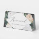 Indicate reserved seating at your wedding with this chic floral sign. Personalize with the name of the guest with reserved seating, framed by a geometric border of pastel watercolor flowers and botanical foliage in desert inspired earth tone shades of peach, sage green, white and ivory.