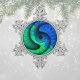 If you like blue and green colors and boho designs, this swirl pattern set in a snowflake frame might be just right for your tree. the design looks a bit like the planet earth swirling into a mandala or yin yang symbol. it's definitely a unique take on traditional ornaments.