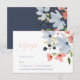 Boho Blue and Pink Floral Wedding RSVP Card