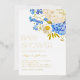 Invite guests to your event with this customizable gold foil baby shower invitation. It features watercolor bouquet of blue and white hydrangeas with floral and greenery accents. Personalize this hydrangea baby shower invitation by adding name, time, date and other event details. This botanical baby shower invitation is perfect for spring and winter baby showers.