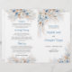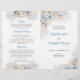 Elegant Boho Blue Floral and Ivory Roses Pampas Grass wedding ceremony program folded , Greenery Wedding Day plan, Wedding Ceremony program, Green and gold wedding agenda,