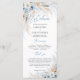 Elegant Boho Blue Floral and Ivory Roses Pampas Grass wedding ceremony program invitation long