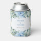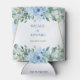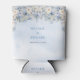 Enhance your special day with these elegant watercolor dusty blue and ivory flowers, along with delicate roses and sage green eucalyptus. Keep your beverages cool and stylish with this chic wedding Can Cooler. Perfect for adding a touch of sophistication to your celebration!