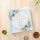 Celebra un momento inolvidable con este álbum de recuerdos personalizado para Quinceañera / 15 años, diseñado en un delicado estilo boho o bohemio. La combinación de tonos azul polvo, azul pastel y azul claro, junto con flores suaves, eucalipto y follaje verde, crea una estética elegante y moderna, realzada con detalles en dorado que aportan un toque de lujo y distinción.