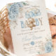 Boho Blue Floral Pampas Teddy Bear Boy Baby Shower Invitation