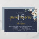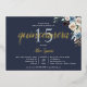 Boho Blue Flowers Dried Leaves Quinceanera Foil Invitation
