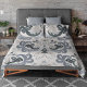 Boho blue and gray duvet cover with subtle mermaid floral scroll pattern design. Includes elegant flowers, scrolls, and stars in shades of steel blue gray and silver. Relaxing, calming, soothing color palette to complement your bedroom home decor. Perfect for beach or lake houses and ocean or seaside retreats. Lovely gift for anyone into the mermaidcore aesthetic.